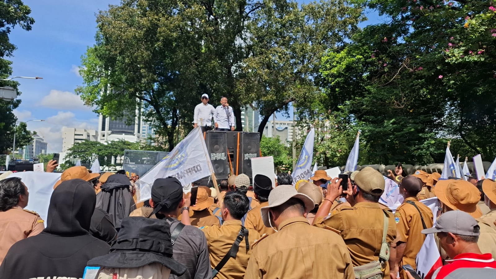 Caption : Para kepala desa se-Indonesia tegah melakukan aksi unjuk rasa