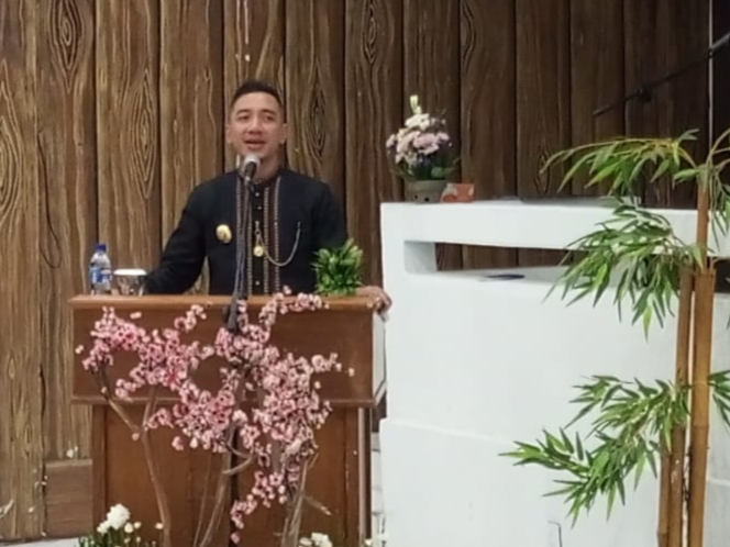 Caption : Bupati Lebak Hasbi Asyidiki Jayabaya Ketika pidato pada sidang paripurna HUT Lebak ke-197