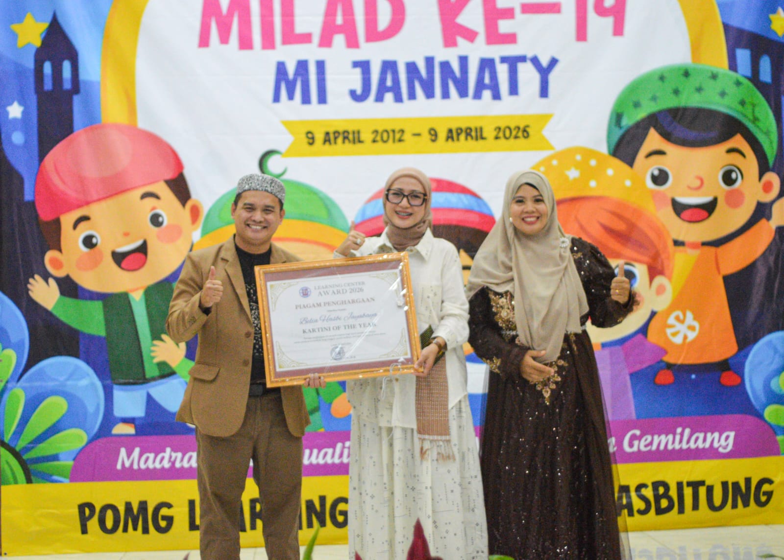 Penghargaan ini menjadi salah satu momen penting dalam rangkaian acara Milad MI Jannaty Learning Centre yang berlangsung meriah dan penuh antusiasme.