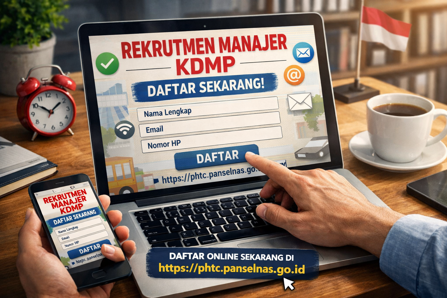 Bagi masyarakat yang berminat, pendaftaran calon manajer KDMP dapat dilakukan secara online melalui laman resmi berikut : https://phtc.panselnas.go.id